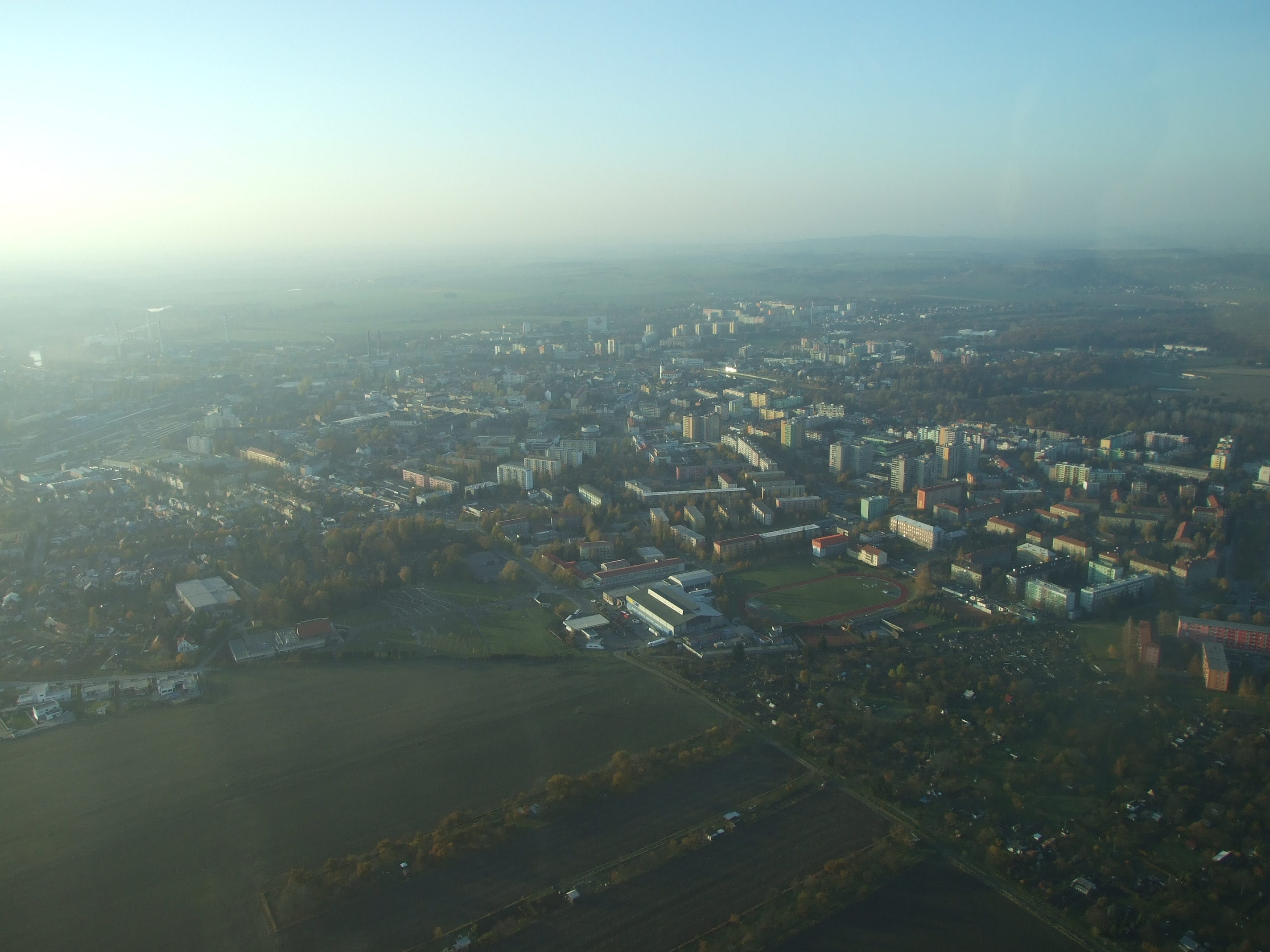 Fotografie areálu TJ Sokol Újezdec, města Přerova a několika okolních vesnic ze dne 3.11.2011. Bohužel nebyly příliš dobré podmínky na focení, viditelnost okolo 6km, opar spolu se špinavým oknem letadla a všudy přítomným smogem vykonali své. Foceno z výšky přibližně 2000 stop.